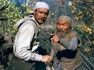 «Дерсу Узала», 1975 год - Сюжет фильма основан на одноимённом романе учёного и писателя, известного путешественника и исследователя Дальнего Востока Владимира Арсеньева — о его путешествиях по Уссурийскому краю и дружбе с таёжным охотником Дерсу Узала, чьи необыкновенные личные качества восхищали В. Арсеньева. Их путешествие по Уссурийской тайге, полное опасных приключений, составляет сюжетную основу фильма, однако смысл повествования выходит далеко за рамки сюжета. Время действия — 1902—1907 годы. Хронология событий в фильме соблюдена лишь в целом, например, ряд деталей, согласно книге «По Уссурийскому краю» относящихся к 1906 году, показаны в первой части, среди происходивших в 1902 году. Добавлена сцена в лагере китайских разбойников — хунхузов, в то время как согласно книге к лагерю приблизился один Дерсу и, замеченный хунхузами, вступил в перестрелку с ними. В то же время в фильме сохранены упоминания Бога, которые были в первоначальном тексте книг «По Уссурийскому краю» и «Дерсу Узала», но почти исключены из ряда изданий, изданных в годы Советской власти. |